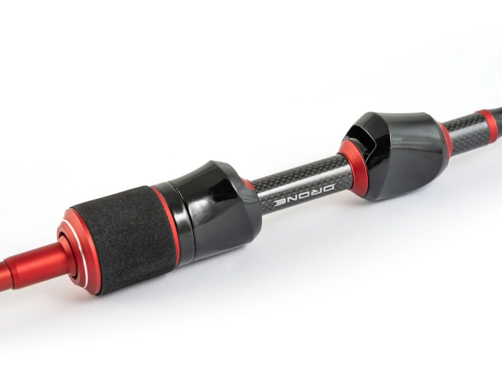 Krátce dělená rukojeť prutu je ergonomicky navržená a je opatřena spodní rukojetí z měkkého materiálu EVA s logem Drone BTX, což zajišťuje pohodlný úchop a lepší ovladatelnost. Kromě toho jsou na prutu použity k - očka SiC s dlouhou patkou, která je perfektní pro ultrajemné šňůry, zajišťující plynulý průchod a minimalizující opotřebení šňůry.