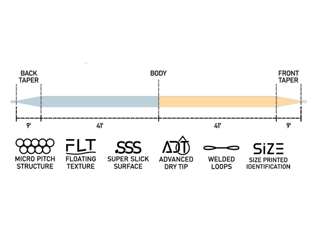 Nové plovoucí šňůry Loomis and Franklin, které díky super hladkému povrchu vynikají při lovu na střední až dlouhé vzdálenosti na suchou mušku a nymfu. Na každém konci je smyčka pro připevnění. Polovina šňůry je světle modrá a druhá polovina je broskvová. Rybář se může rozhodnout, která barva je za daných podmínek na hladině vody viditelnější.