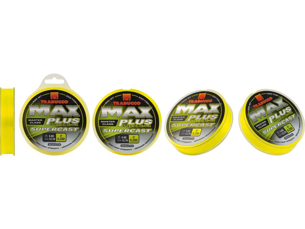 Vlasec Max Plus Supercast line byl speciálně navrhnut pro chytání na velkých vzdálenostech a to jak v sladkovodních tak slaných vodách. Jako každý vlasec Trabucco se vyznačuje vysokou pevností v uzlu a vysokou odolností proti oděru. Pro lepší orientaci je označených každých 250m.