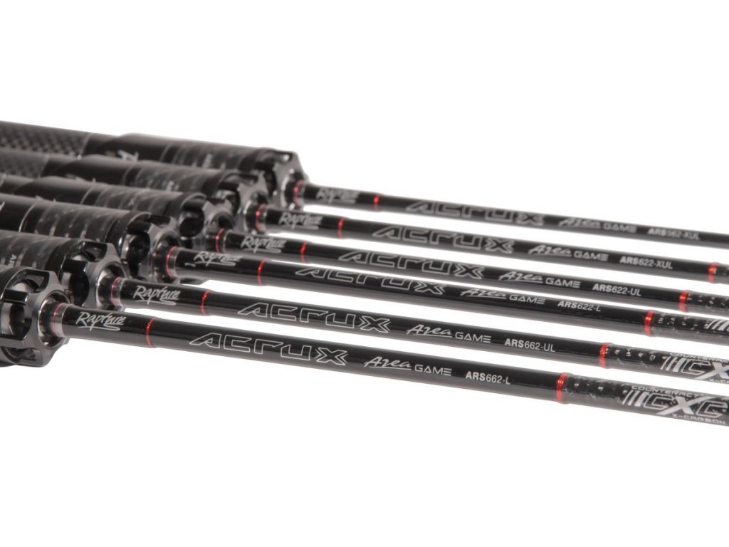 Acrux Area jsou vysoce specializované pruty pro lov s třpytkou nebo crankbaity. Díky zkřížení uhlíkových vláken (CXC Carbon) jsou vysoce citlivé a zajišťují vysokou přesnost při nahazování. Blank vyrobený z vysoce kvalitního SX4 Nano Carbonu s dutou horní částí (tubular top). Prut je osazen ultralehkými očky Sea Guide SiC-RS s jednou patkou, které jsou ideální pro pletené šňůry.