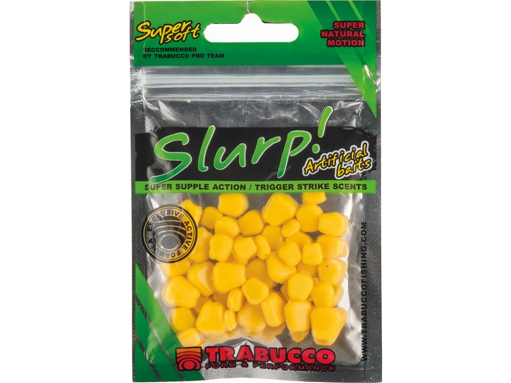 Slurp Bait je dokonalá imitace plovoucí kukuřice, velice měkká a odolná. Impregnována atraktory, což z ní dělá velmi atraktivní návnadu. Vhodná k dipování nebo v kombinaci s boilie, peletou, klasickou kukuřicí i jako samotnou.