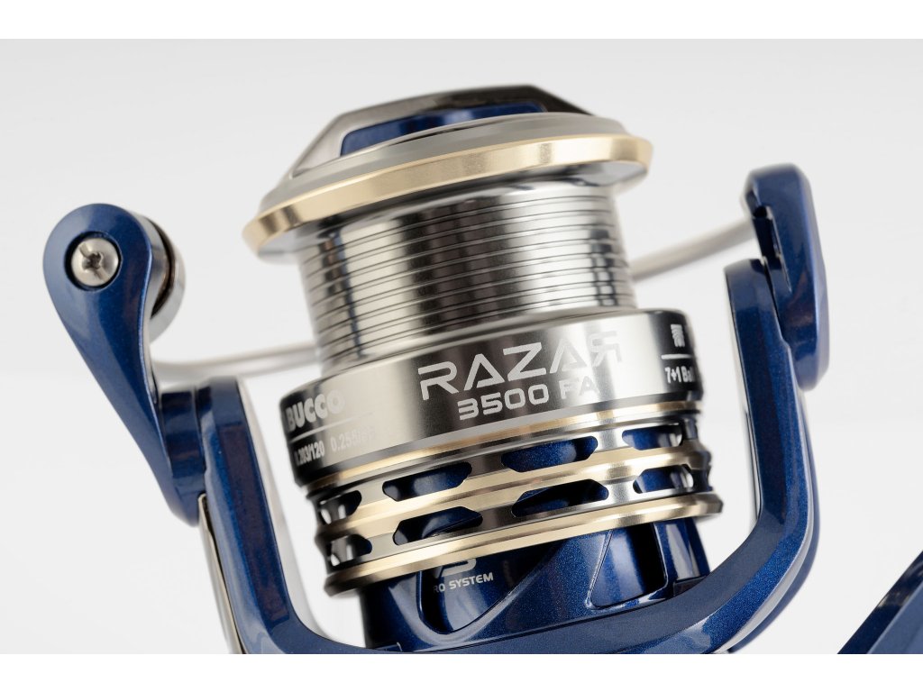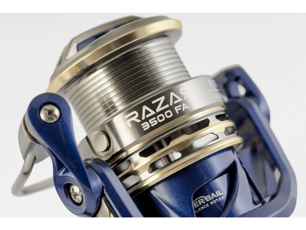 Naviják Razar je vysoce kvalitní a výkonný naviják, který nabízí skvělou kombinaci pevnosti a lehkosti díky použití tvrzeného grafitu pro tělo a rotor. S hliníkovou cívkou vybavenou tenkým předním břitem (V-Spoor) a CNC obrobenou, naviják poskytuje vynikající odhazovací výkon a velkou kapacitu pro uložení vlasce.