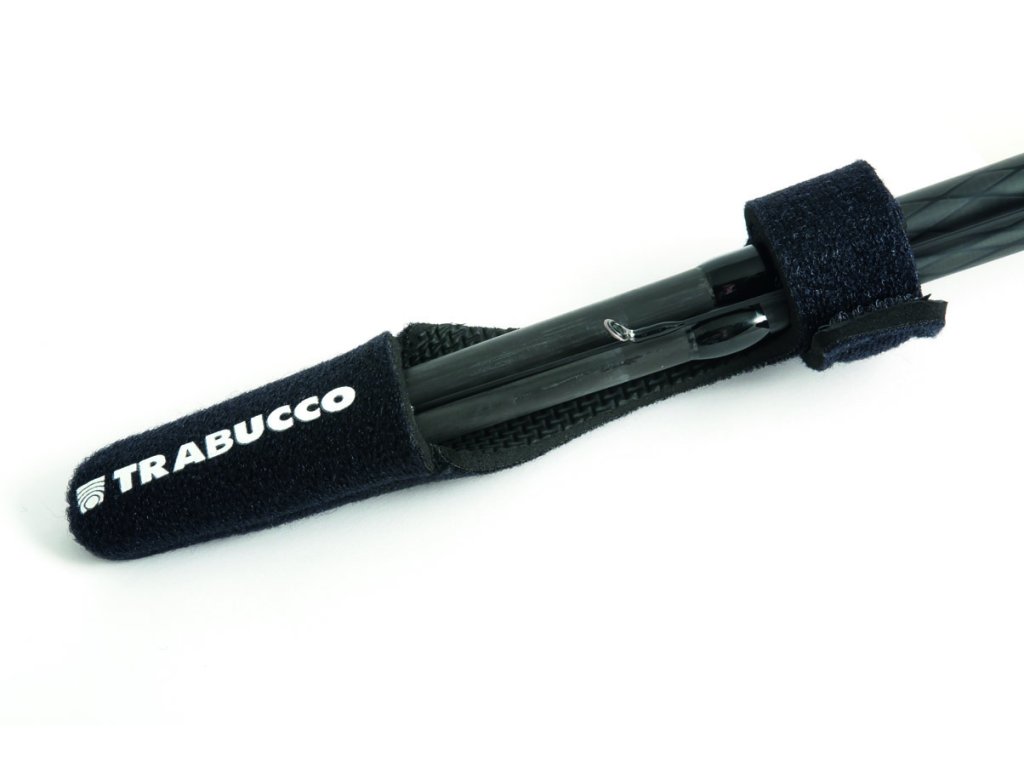Neoprénové pásky Trabucco k držení dílu prutu. Vrchní část zároveň chrání špičky a očka. Materiál molitanová směs.