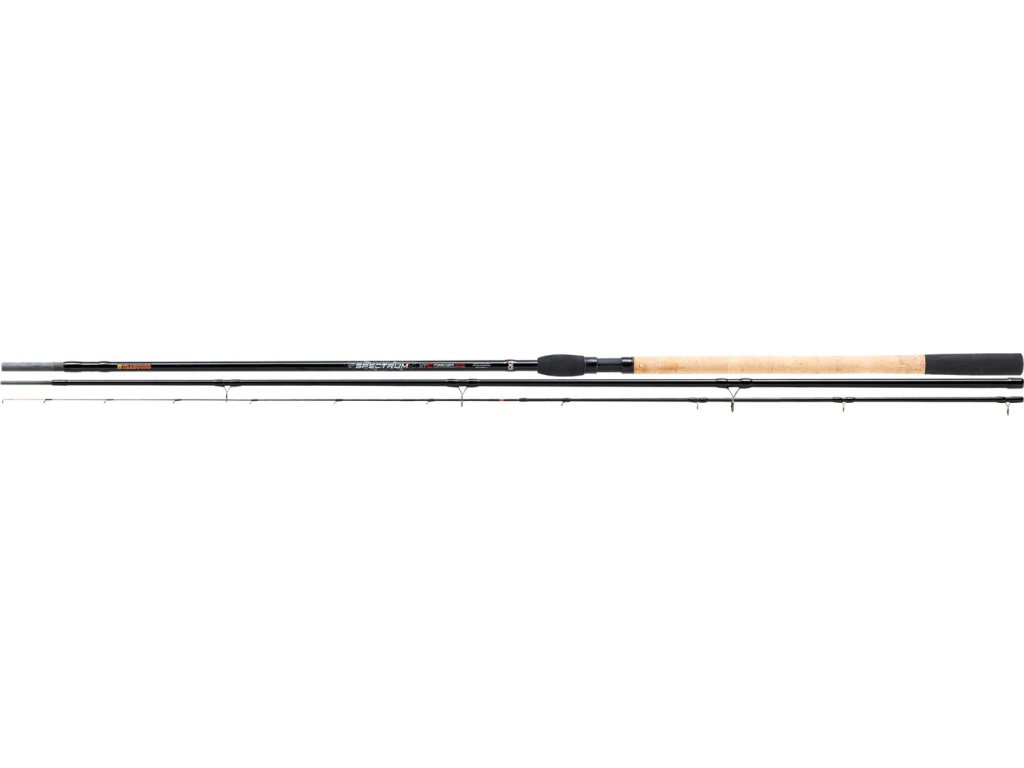 Pruty modelové řady SPECTRUM představují zcela nové unikátní řešení konstrukce blanku. Vyhodnocením celkové studie, kdy se vycházelo z detekční křivky přenášené ve fázi záběru, záseku a následného zdolávaní ryby se docílilo unikátně propracovaného těla prutu postaveného na těch nejkvalitnějších materiálech. Laicky řečeno, celý prut byl postaven takříkajíc od špičky po rukojeť. Celkem 5 modelových typů prutů určených pro různé typy feederového lovu předurčují jejich komplexní využití. První dva modely s označením ML a vrhací zátěží 30 – 40g mají plně hyper parabolickou akci a jsou ideální pro lov na menších typech stojatých a tekoucích vod s odhozem do 50m. Zbývající tři modely s označením MP a PW s vrhací zátěží 60 – 80g mají plně parabolickou akci a jsou ideálem pro vetší řeky a stojaté vody, kde je zapotřebí odhazovat těžší gramáže na větší vzdálenosti. Celý koncept je konstrukčně postaven na nejkvalitnějším CX1 MICRO-PITCH carbonu a osazen očky SiC Sea Guide s dvojitou keramickou výplní, která eliminuje tření při náhozech, zejména za použití pletených šňůr a zároveň chrání očka proti mechanickému poškození. Korková rukojeť je zakončena hybridně s použitím EVA materiálu. Šroubové sedlo navijáku je integrováno do rukojeti s matným gumovým povrchem. Pruty jsou dodávány se 3 výměnnými carbonovými špičkami v ochranném tubusu. Charakteristickým prvkem celé modelové řady je velmi stylový polstrovaný obal opatřený zipem.
