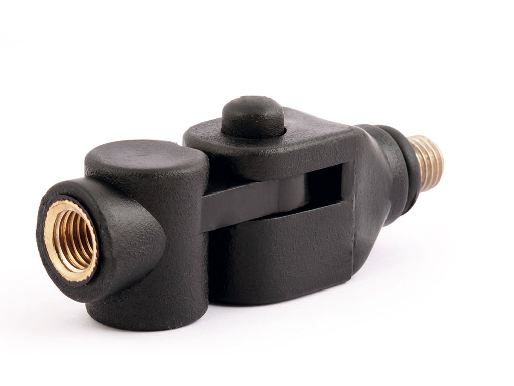 Chytrá a univerzální redukce z tvrdého plastu ABS na feederovou vidličku. Díky tlačítku po straně lze redukci rychle polohovat z 0° na 90°.