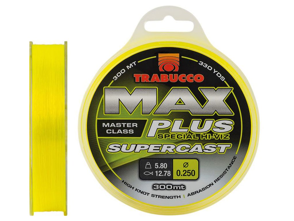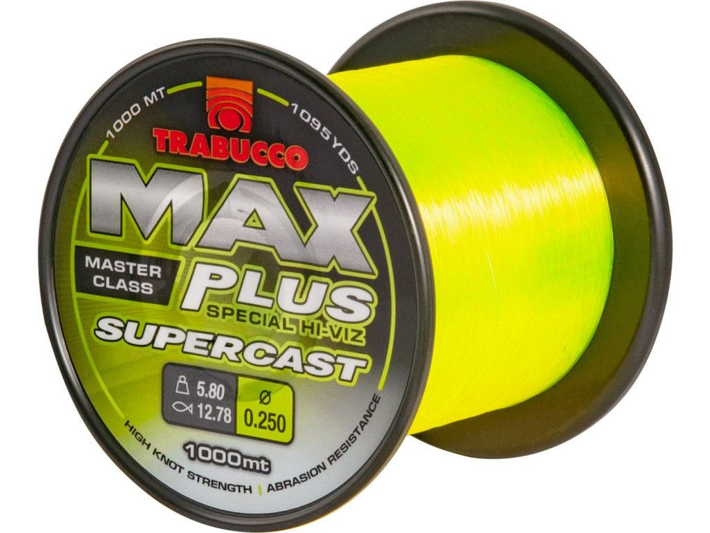 Vlasec Max Plus Supercast line byl speciálně navrhnut pro chytání na velkých vzdálenostech a to jak v sladkovodních tak slaných vodách. Jako každý vlasec Trabucco se vyznačuje vysokou pevností v uzlu a vysokou odolností proti oděru. Pro lepší orientaci je označených každých 250m.