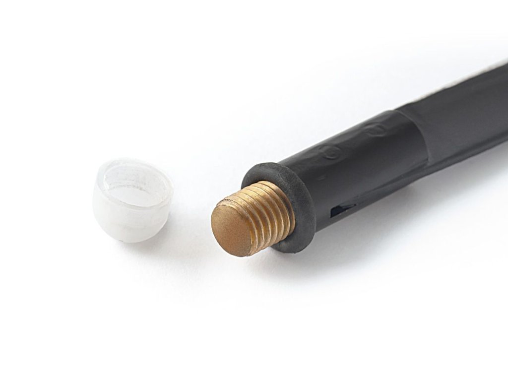 Výrobek je broušený a je vybaven praktickým ochranným pouzdrem, které se zavírá na dva kovové knoflíky. Mosazný šroub je opatřen ochrannou krytkou pro transport a gumovým o-kroužkem pro dokonalé zajištění závitu.